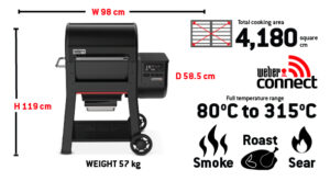 Cook confidently with intuitive digital controls on the barbecue, along with Wi-Fi® and Bluetooth® connectivity that lets you monitor and control the barbecue remotely. View live graphs, receive readiness alerts, access recipes, and more via the Weber Connect® app on your smartphone. Explore new techniques with a rotisserie or griddle insert (each sold separately). Then clean up quickly and easily with the pull and clean grease and ash management system, located at the front of the barbecue.